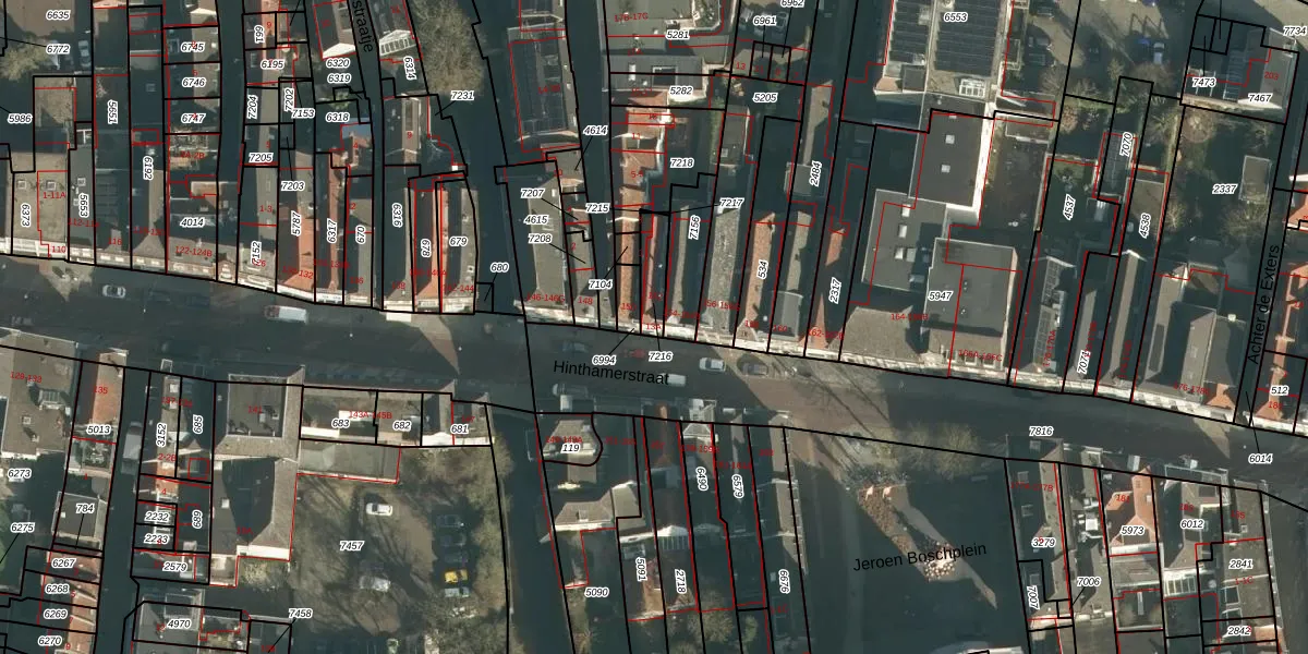 Hinthamerstraat 152 is gelegen op kadastraal perceel HTG00H7216. Deze kadastrale aanduiding is uniek en wordt gebruikt door het Kadaster om eigendomsrechten en andere zakelijke rechten vast te leggen. Het perceel maakt onderdeel uit van de kadastrale gemeente 's-Hertogenbosch.