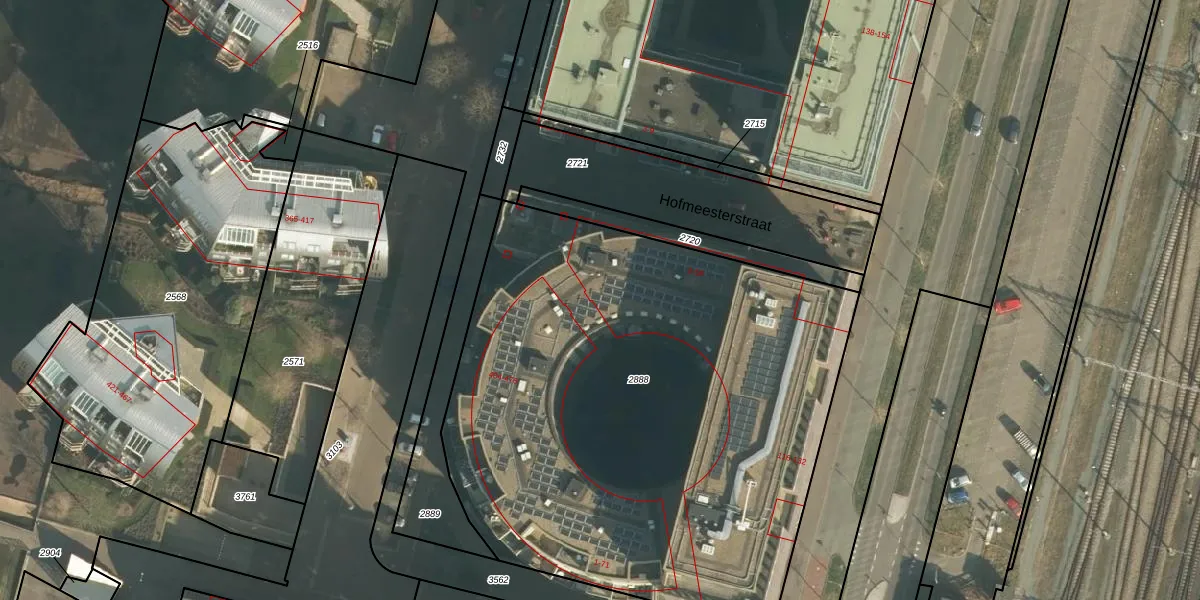 Het perceel waarop Hofmeesterstraat 36 staat heeft een oppervlakte van 3502 m². Dit is een zeer groot perceel. De perceeloppervlakte wordt geregistreerd door het Kadaster. Gedetailleerde informatie over de maten van dit perceel kunt u vinden in het rapport Kadastrale kaart met maatvoering van Hofmeesterstraat 36.