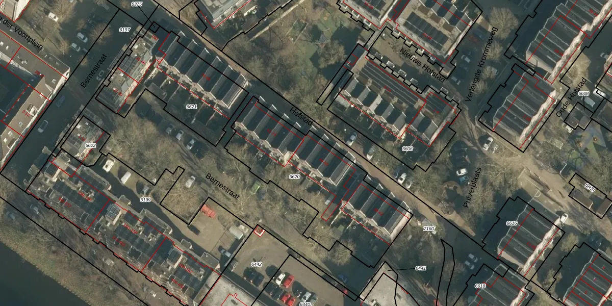 Het perceel waarop Hofstad 54 staat heeft een oppervlakte van 1380 m². Dit is een zeer groot perceel. De perceeloppervlakte wordt geregistreerd door het Kadaster. Gedetailleerde informatie over de maten van dit perceel kunt u vinden in het rapport Kadastrale kaart met maatvoering van Hofstad 54.
