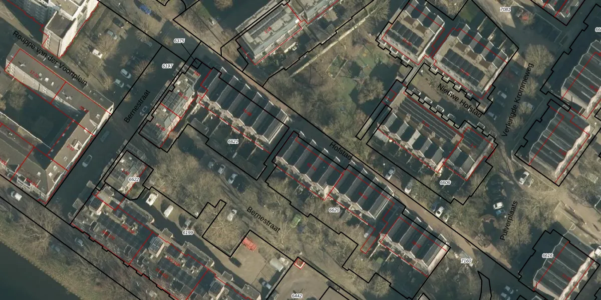 Het perceel waarop Hofstad 66 staat heeft een oppervlakte van 1380 m². Dit is een zeer groot perceel. De perceeloppervlakte wordt geregistreerd door het Kadaster. Gedetailleerde informatie over de maten van dit perceel kunt u vinden in het rapport Kadastrale kaart met maatvoering van Hofstad 66.