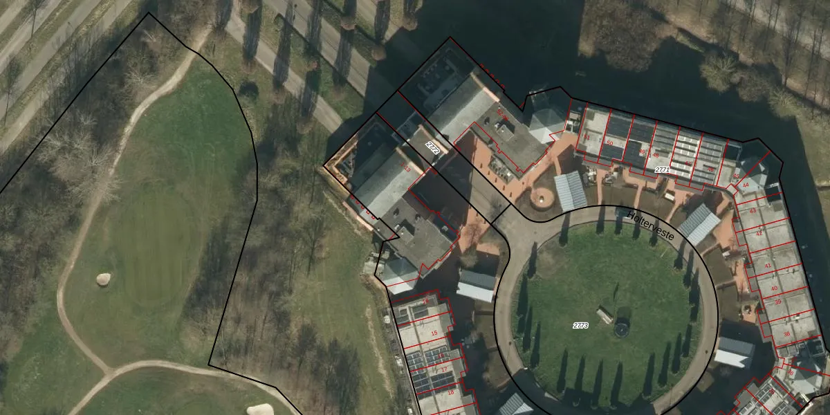 Het perceel waarop Holterveste 10 staat heeft een oppervlakte van 6896 m². Dit is een zeer groot perceel. De perceeloppervlakte wordt geregistreerd door het Kadaster. Gedetailleerde informatie over de maten van dit perceel kunt u vinden in het rapport Kadastrale kaart met maatvoering van Holterveste 10.