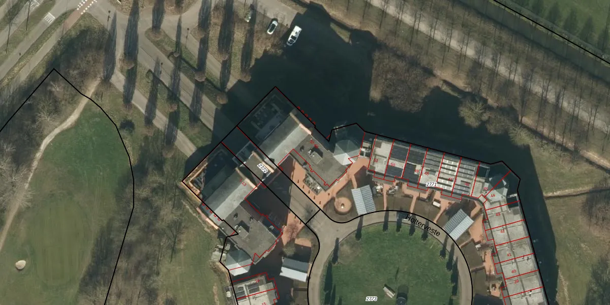 Het perceel waarop Holterveste 52 staat heeft een oppervlakte van 6896 m². Dit is een zeer groot perceel. De perceeloppervlakte wordt geregistreerd door het Kadaster. Gedetailleerde informatie over de maten van dit perceel kunt u vinden in het rapport Kadastrale kaart met maatvoering van Holterveste 52.