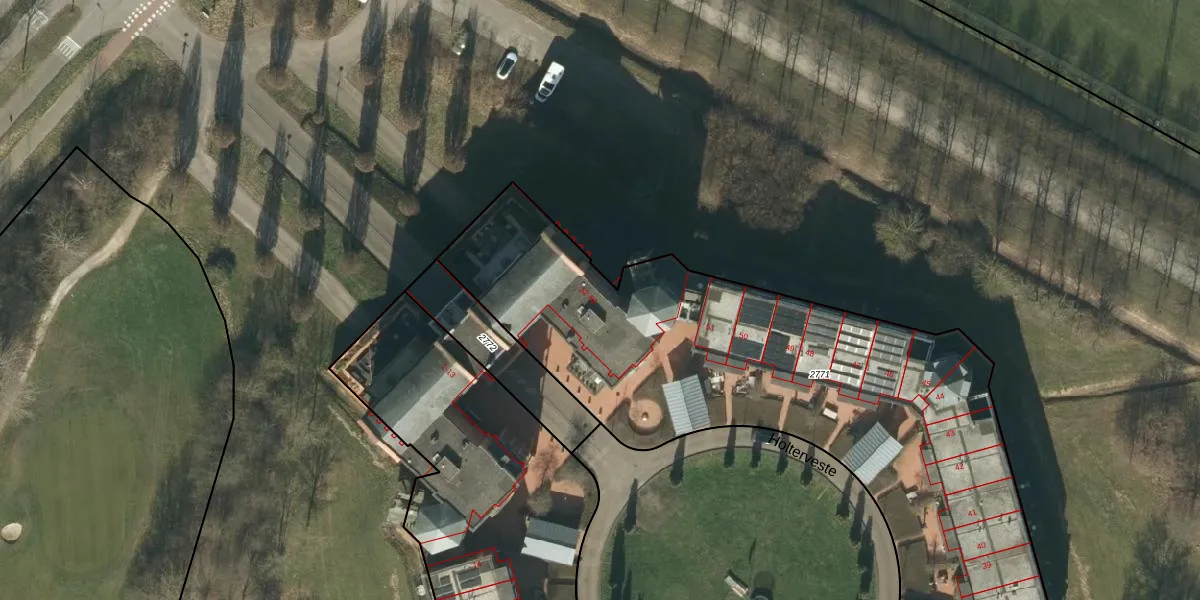 Het perceel waarop Holterveste 57 staat heeft een oppervlakte van 6896 m². Dit is een zeer groot perceel. De perceeloppervlakte wordt geregistreerd door het Kadaster. Gedetailleerde informatie over de maten van dit perceel kunt u vinden in het rapport Kadastrale kaart met maatvoering van Holterveste 57.
