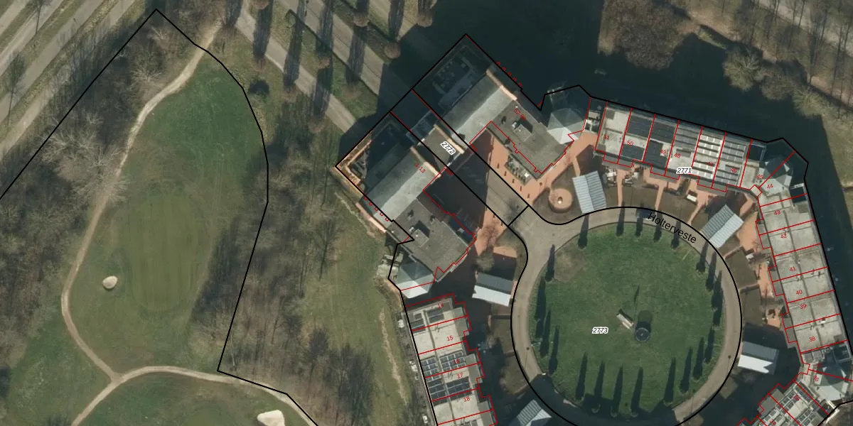 Het perceel waarop Holterveste 8 staat heeft een oppervlakte van 6896 m². Dit is een zeer groot perceel. De perceeloppervlakte wordt geregistreerd door het Kadaster. Gedetailleerde informatie over de maten van dit perceel kunt u vinden in het rapport Kadastrale kaart met maatvoering van Holterveste 8.