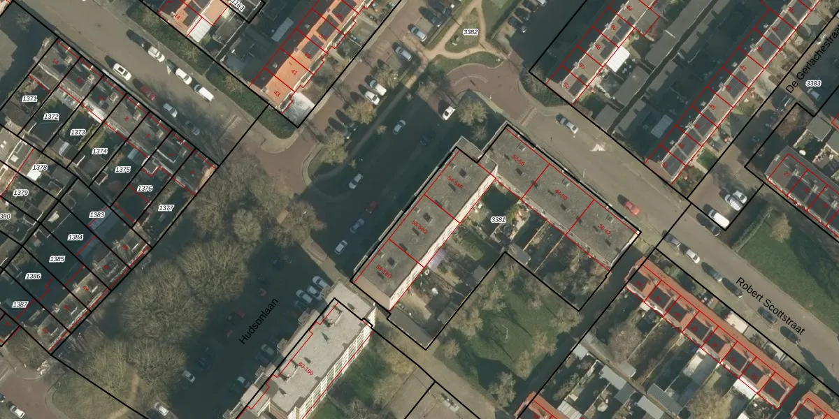 Het perceel waarop Hudsonlaan 56 staat heeft een oppervlakte van 1779 m². Dit is een zeer groot perceel. De perceeloppervlakte wordt geregistreerd door het Kadaster. Gedetailleerde informatie over de maten van dit perceel kunt u vinden in het rapport Kadastrale kaart met maatvoering van Hudsonlaan 56.