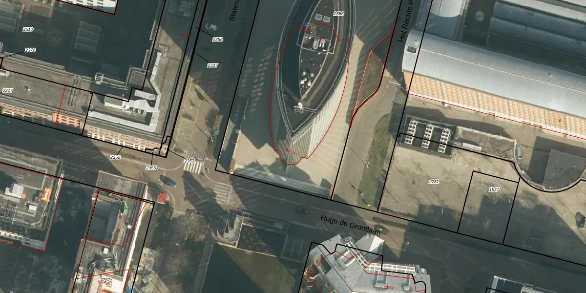 Het perceel waarop Hugo de Grootlaan 15 staat heeft een oppervlakte van 3436 m². Dit is een zeer groot perceel. De perceeloppervlakte wordt geregistreerd door het Kadaster. Gedetailleerde informatie over de maten van dit perceel kunt u vinden in het rapport Kadastrale kaart met maatvoering van Hugo de Grootlaan 15.