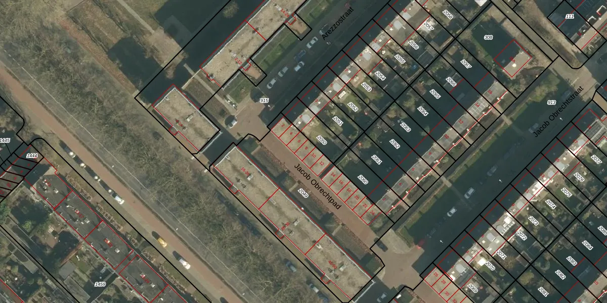 Jacob Obrechtpad 8 is gelegen op kadastraal perceel HTG00N2049. Deze kadastrale aanduiding is uniek en wordt gebruikt door het Kadaster om eigendomsrechten en andere zakelijke rechten vast te leggen. Het perceel maakt onderdeel uit van de kadastrale gemeente 's-Hertogenbosch.