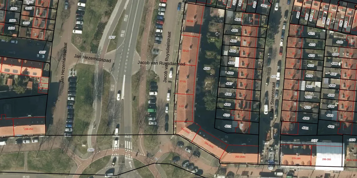 Het perceel waarop Jacob van Ruysdaelstraat 21 staat heeft een oppervlakte van 2287 m². Dit is een zeer groot perceel. De perceeloppervlakte wordt geregistreerd door het Kadaster. Gedetailleerde informatie over de maten van dit perceel kunt u vinden in het rapport Kadastrale kaart met maatvoering van Jacob van Ruysdaelstraat 21.