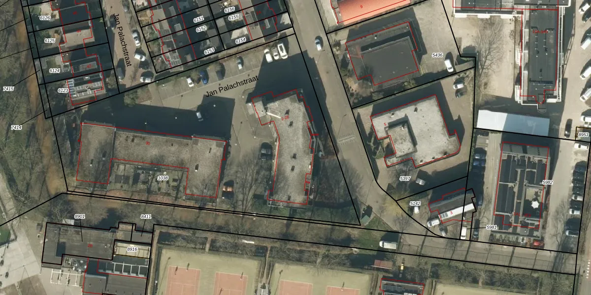 Het perceel waarop Jan Palachstraat 18 staat heeft een oppervlakte van 4198 m². Dit is een zeer groot perceel. De perceeloppervlakte wordt geregistreerd door het Kadaster. Gedetailleerde informatie over de maten van dit perceel kunt u vinden in het rapport Kadastrale kaart met maatvoering van Jan Palachstraat 18.