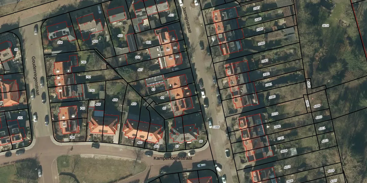 Gebruik de zoekbalk of klik op een perceel voor informatie over de adressen binnen dit perceel.