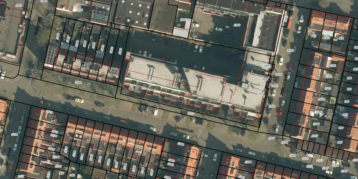 Het perceel waarop Javastraat 151 staat heeft een oppervlakte van 3204 m². Dit is een zeer groot perceel. De perceeloppervlakte wordt geregistreerd door het Kadaster. Gedetailleerde informatie over de maten van dit perceel kunt u vinden in het rapport Kadastrale kaart met maatvoering van Javastraat 151.