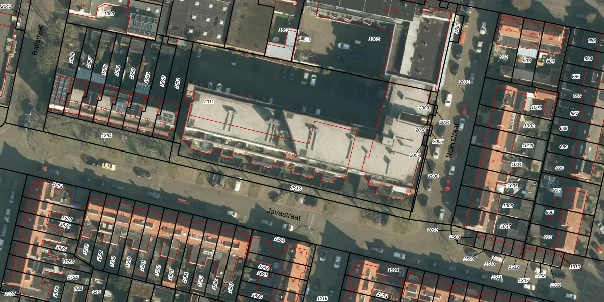 Het perceel waarop Javastraat 162 staat heeft een oppervlakte van 3204 m². Dit is een zeer groot perceel. De perceeloppervlakte wordt geregistreerd door het Kadaster. Gedetailleerde informatie over de maten van dit perceel kunt u vinden in het rapport Kadastrale kaart met maatvoering van Javastraat 162.