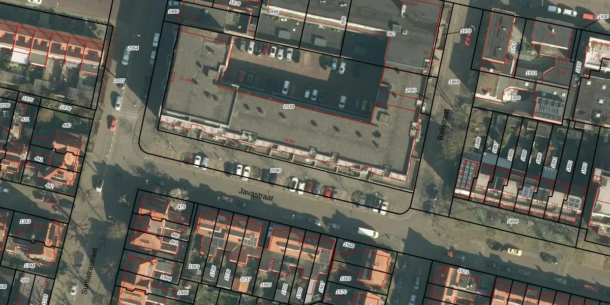 Het perceel waarop Javastraat 59 staat heeft een oppervlakte van 3161 m². Dit is een zeer groot perceel. De perceeloppervlakte wordt geregistreerd door het Kadaster. Gedetailleerde informatie over de maten van dit perceel kunt u vinden in het rapport Kadastrale kaart met maatvoering van Javastraat 59.