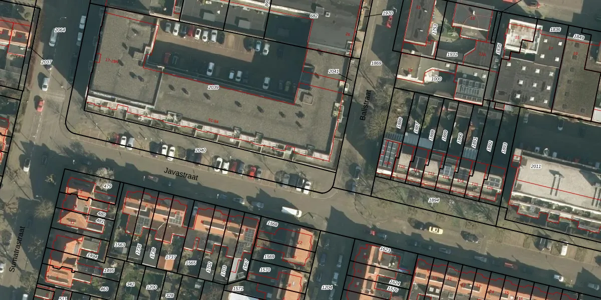Het perceel waarop Javastraat 65 staat heeft een oppervlakte van 3161 m². Dit is een zeer groot perceel. De perceeloppervlakte wordt geregistreerd door het Kadaster. Gedetailleerde informatie over de maten van dit perceel kunt u vinden in het rapport Kadastrale kaart met maatvoering van Javastraat 65.