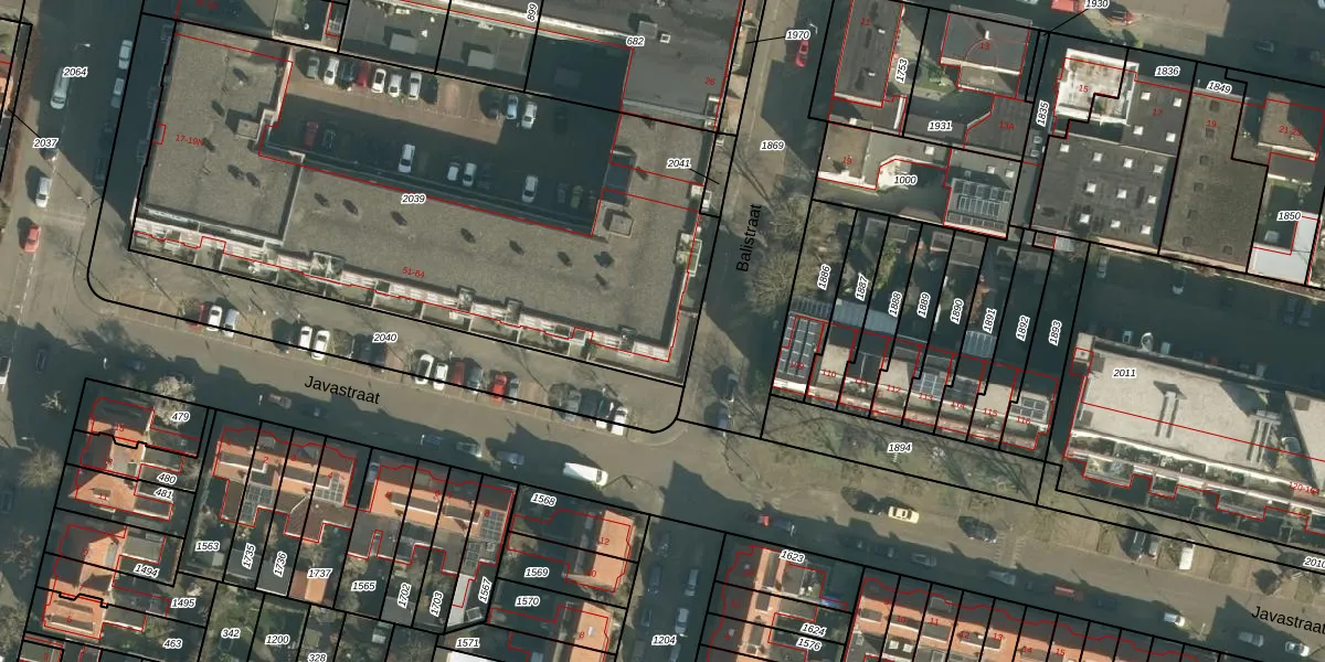 Het perceel waarop Javastraat 84 staat heeft een oppervlakte van 3161 m². Dit is een zeer groot perceel. De perceeloppervlakte wordt geregistreerd door het Kadaster. Gedetailleerde informatie over de maten van dit perceel kunt u vinden in het rapport Kadastrale kaart met maatvoering van Javastraat 84.