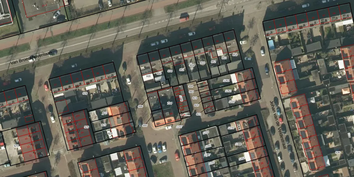 Het perceel waarop Johan van de Veldestraat 19-F staat heeft een oppervlakte van 92 m². Dit is een klein perceel. De perceeloppervlakte wordt geregistreerd door het Kadaster. Gedetailleerde informatie over de maten van dit perceel kunt u vinden in het rapport Kadastrale kaart met maatvoering van Johan van de Veldestraat 19-F.