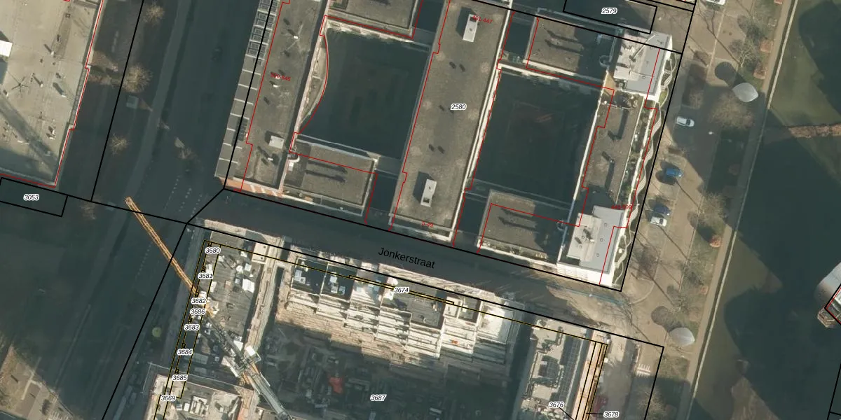 Het perceel waarop Jonkerstraat 13 staat heeft een oppervlakte van 5699 m². Dit is een zeer groot perceel. De perceeloppervlakte wordt geregistreerd door het Kadaster. Gedetailleerde informatie over de maten van dit perceel kunt u vinden in het rapport Kadastrale kaart met maatvoering van Jonkerstraat 13.