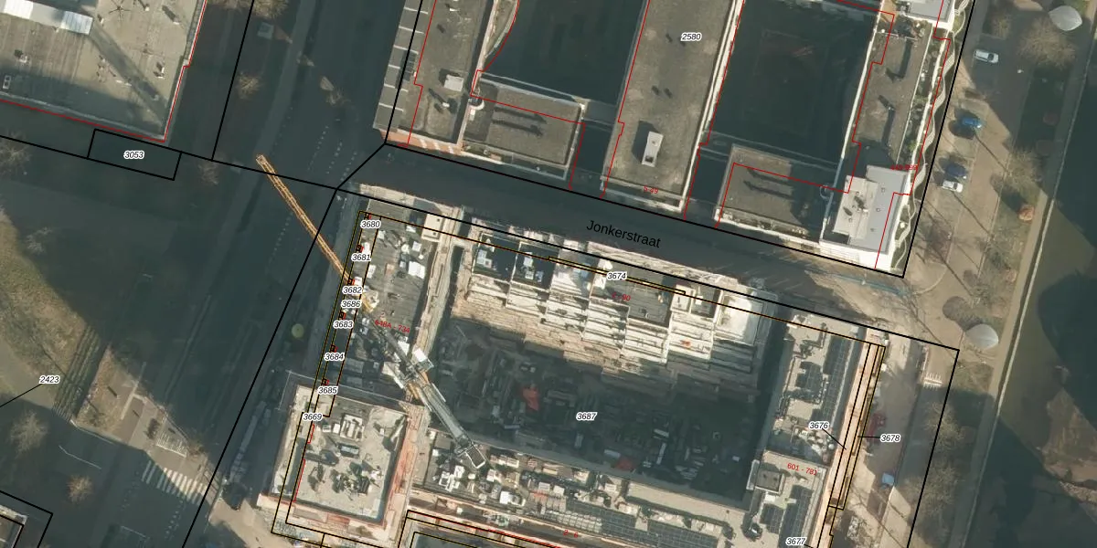 Het perceel waarop Jonkerstraat 16 staat heeft een oppervlakte van 4877 m². Dit is een zeer groot perceel. De perceeloppervlakte wordt geregistreerd door het Kadaster. Gedetailleerde informatie over de maten van dit perceel kunt u vinden in het rapport Kadastrale kaart met maatvoering van Jonkerstraat 16.