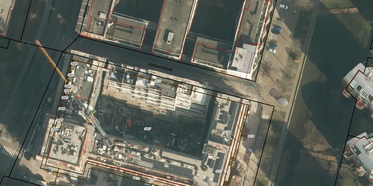 Het perceel waarop Jonkerstraat 22 staat heeft een oppervlakte van 4877 m². Dit is een zeer groot perceel. De perceeloppervlakte wordt geregistreerd door het Kadaster. Gedetailleerde informatie over de maten van dit perceel kunt u vinden in het rapport Kadastrale kaart met maatvoering van Jonkerstraat 22.