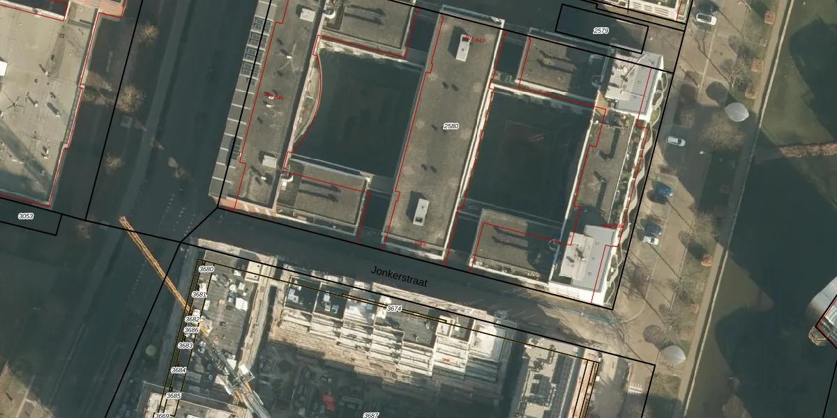 Het perceel waarop Jonkerstraat 23 staat heeft een oppervlakte van 5699 m². Dit is een zeer groot perceel. De perceeloppervlakte wordt geregistreerd door het Kadaster. Gedetailleerde informatie over de maten van dit perceel kunt u vinden in het rapport Kadastrale kaart met maatvoering van Jonkerstraat 23.