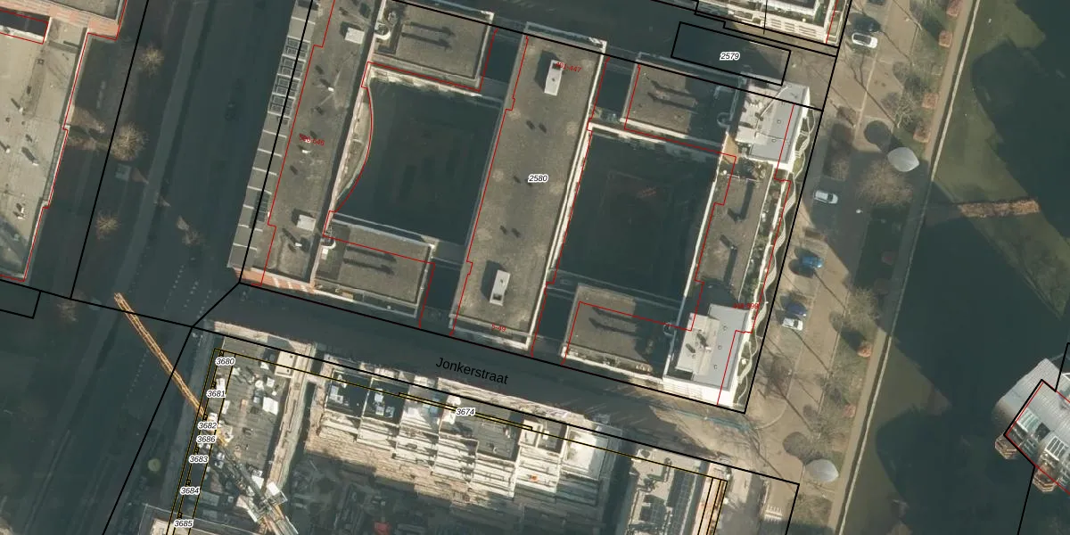 Het perceel waarop Jonkerstraat 37 staat heeft een oppervlakte van 5699 m². Dit is een zeer groot perceel. De perceeloppervlakte wordt geregistreerd door het Kadaster. Gedetailleerde informatie over de maten van dit perceel kunt u vinden in het rapport Kadastrale kaart met maatvoering van Jonkerstraat 37.