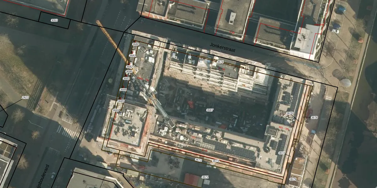 Het perceel waarop Jonkerstraat 74 staat heeft een oppervlakte van 4877 m². Dit is een zeer groot perceel. De perceeloppervlakte wordt geregistreerd door het Kadaster. Gedetailleerde informatie over de maten van dit perceel kunt u vinden in het rapport Kadastrale kaart met maatvoering van Jonkerstraat 74.