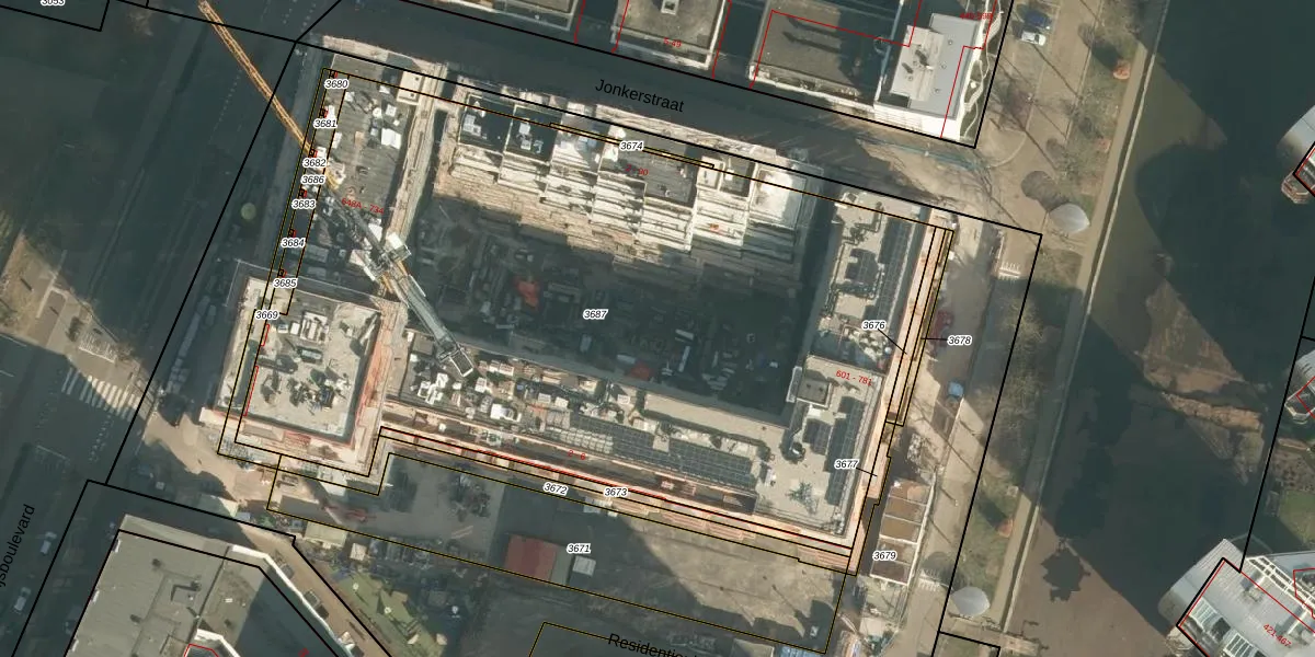 Het perceel waarop Jonkerstraat 86 staat heeft een oppervlakte van 4877 m². Dit is een zeer groot perceel. De perceeloppervlakte wordt geregistreerd door het Kadaster. Gedetailleerde informatie over de maten van dit perceel kunt u vinden in het rapport Kadastrale kaart met maatvoering van Jonkerstraat 86.