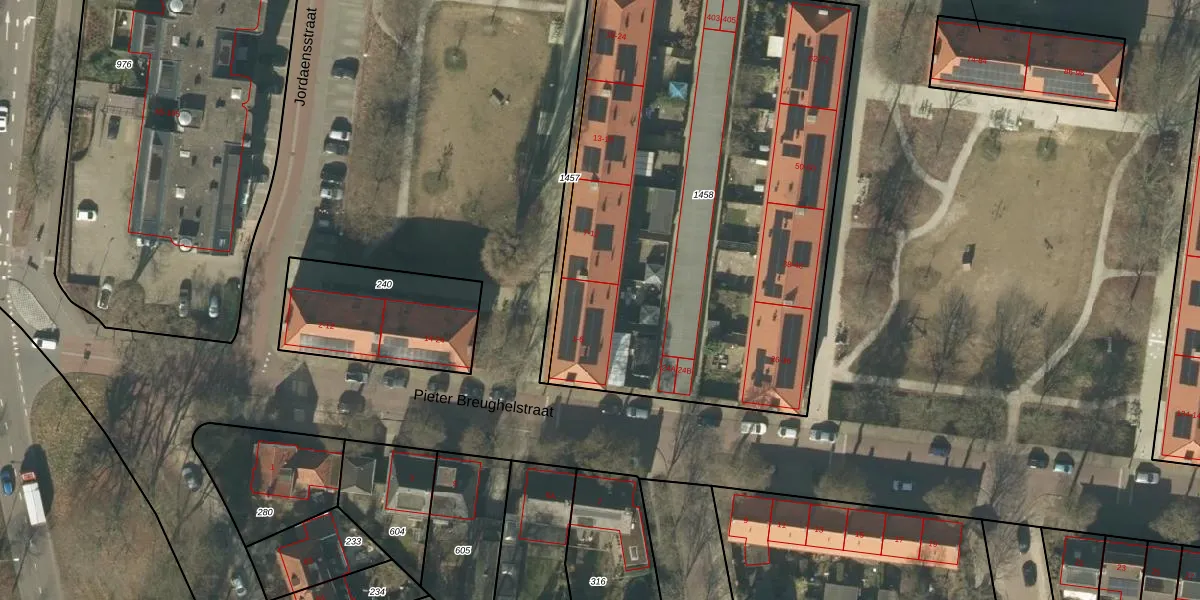 Het perceel waarop Jordaensstraat 4 staat heeft een oppervlakte van 3005 m². Dit is een zeer groot perceel. De perceeloppervlakte wordt geregistreerd door het Kadaster. Gedetailleerde informatie over de maten van dit perceel kunt u vinden in het rapport Kadastrale kaart met maatvoering van Jordaensstraat 4.