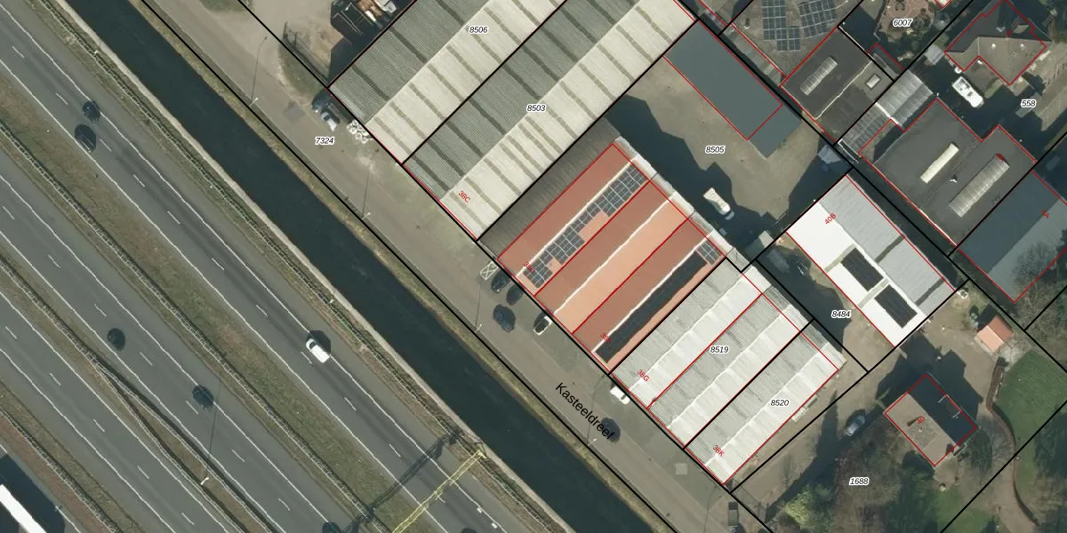 Kasteeldreef 38-D is gelegen op kadastraal perceel HTG00T8505. Deze kadastrale aanduiding is uniek en wordt gebruikt door het Kadaster om eigendomsrechten en andere zakelijke rechten vast te leggen. Het perceel maakt onderdeel uit van de kadastrale gemeente 's-Hertogenbosch.