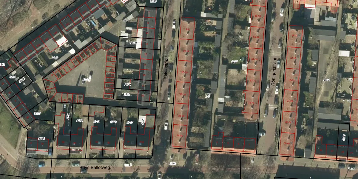 Het perceel waarop Kelvinstraat 22 staat heeft een oppervlakte van 4643 m². Dit is een zeer groot perceel. De perceeloppervlakte wordt geregistreerd door het Kadaster. Gedetailleerde informatie over de maten van dit perceel kunt u vinden in het rapport Kadastrale kaart met maatvoering van Kelvinstraat 22.