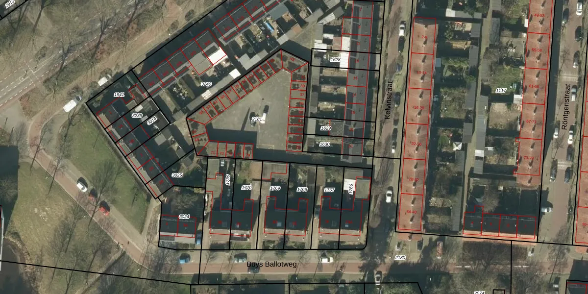 Het perceel waarop Kelvinstraat 25 staat heeft een oppervlakte van 1200 m². Dit is een zeer groot perceel. De perceeloppervlakte wordt geregistreerd door het Kadaster. Gedetailleerde informatie over de maten van dit perceel kunt u vinden in het rapport Kadastrale kaart met maatvoering van Kelvinstraat 25.