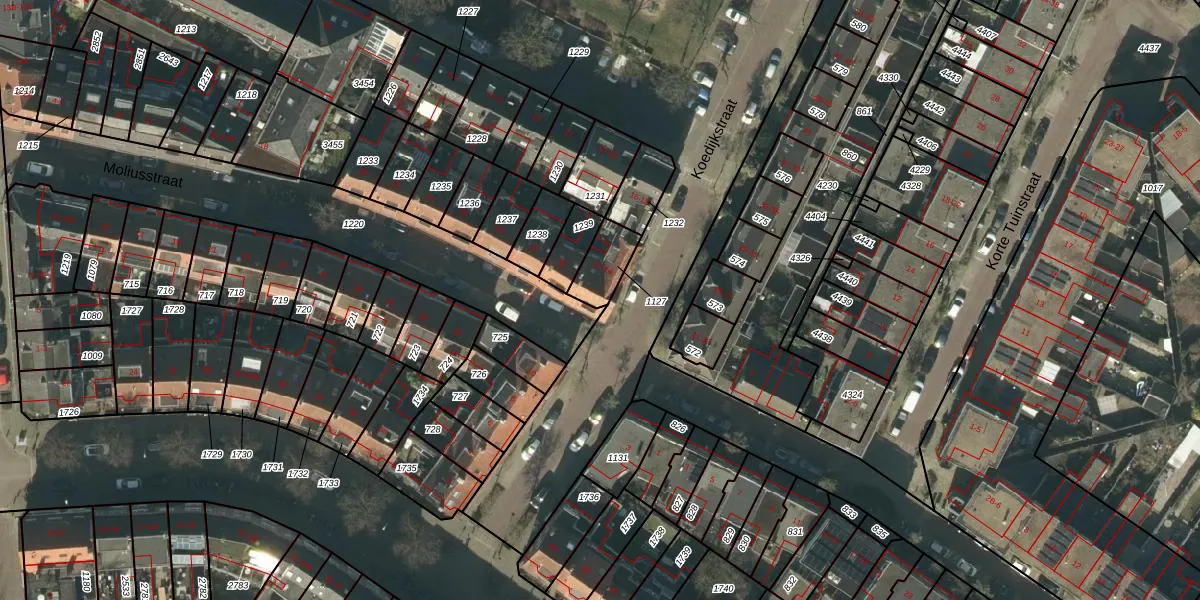 Het perceel waarop Koedijkstraat 12 staat heeft een oppervlakte van 97 m². Dit is een klein perceel. De perceeloppervlakte wordt geregistreerd door het Kadaster. Gedetailleerde informatie over de maten van dit perceel kunt u vinden in het rapport Kadastrale kaart met maatvoering van Koedijkstraat 12.