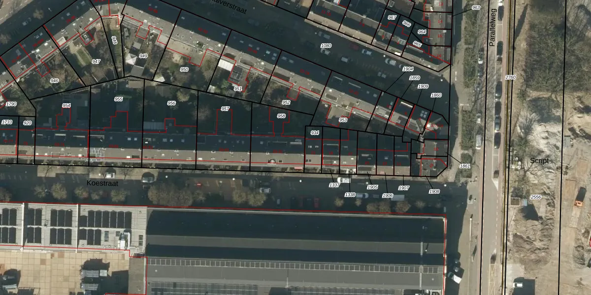 Het perceel waarop Koestraat 29 staat heeft een oppervlakte van 406 m². Dit is een groot perceel. De perceeloppervlakte wordt geregistreerd door het Kadaster. Gedetailleerde informatie over de maten van dit perceel kunt u vinden in het rapport Kadastrale kaart met maatvoering van Koestraat 29.