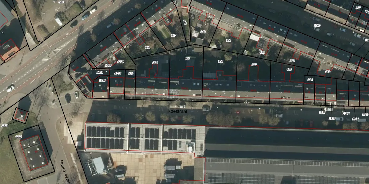 Het perceel waarop Koestraat 55 staat heeft een oppervlakte van 538 m². Dit is een groot perceel. De perceeloppervlakte wordt geregistreerd door het Kadaster. Gedetailleerde informatie over de maten van dit perceel kunt u vinden in het rapport Kadastrale kaart met maatvoering van Koestraat 55.