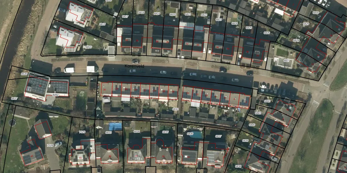 Het perceel waarop Korenveld 16 staat heeft een oppervlakte van 2257 m². Dit is een zeer groot perceel. De perceeloppervlakte wordt geregistreerd door het Kadaster. Gedetailleerde informatie over de maten van dit perceel kunt u vinden in het rapport Kadastrale kaart met maatvoering van Korenveld 16.