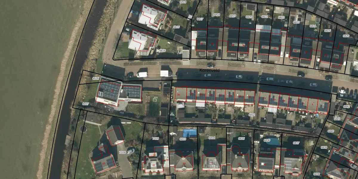 Het perceel waarop Korenveld 30 staat heeft een oppervlakte van 2257 m². Dit is een zeer groot perceel. De perceeloppervlakte wordt geregistreerd door het Kadaster. Gedetailleerde informatie over de maten van dit perceel kunt u vinden in het rapport Kadastrale kaart met maatvoering van Korenveld 30.