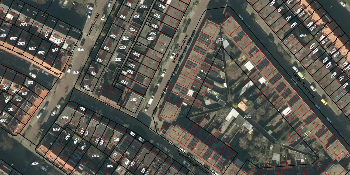 Het perceel waarop Korte Tuinstraat 9 staat heeft een oppervlakte van 4855 m². Dit is een zeer groot perceel. De perceeloppervlakte wordt geregistreerd door het Kadaster. Gedetailleerde informatie over de maten van dit perceel kunt u vinden in het rapport Kadastrale kaart met maatvoering van Korte Tuinstraat 9.