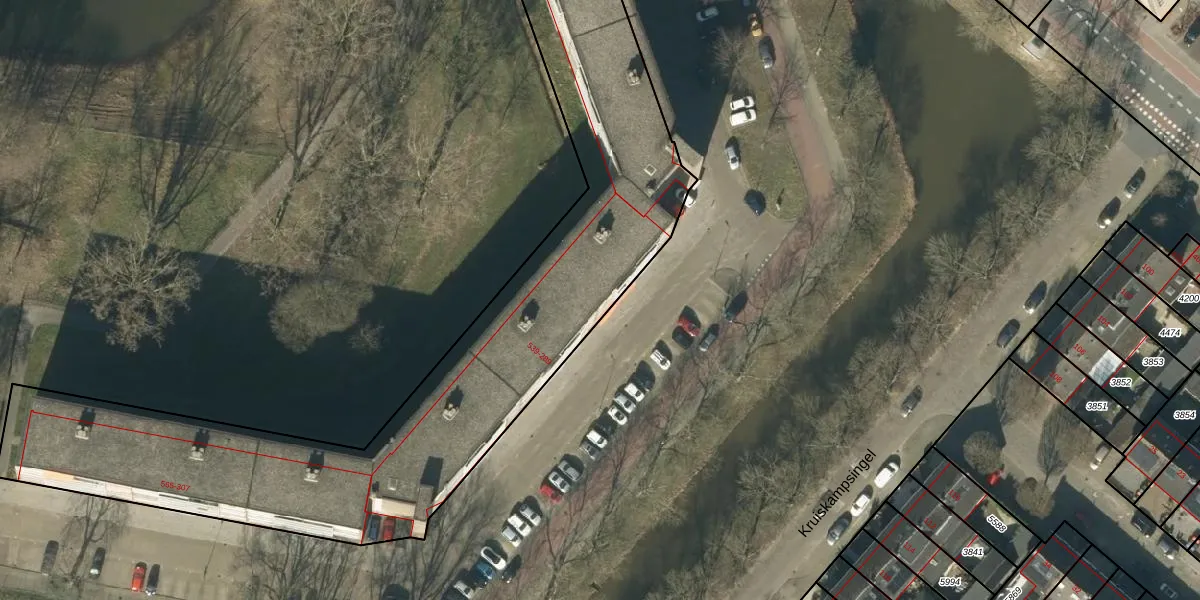 Het perceel waarop Kruiskampsingel 521-A staat heeft een oppervlakte van 3867 m². Dit is een zeer groot perceel. De perceeloppervlakte wordt geregistreerd door het Kadaster. Gedetailleerde informatie over de maten van dit perceel kunt u vinden in het rapport Kadastrale kaart met maatvoering van Kruiskampsingel 521-A.