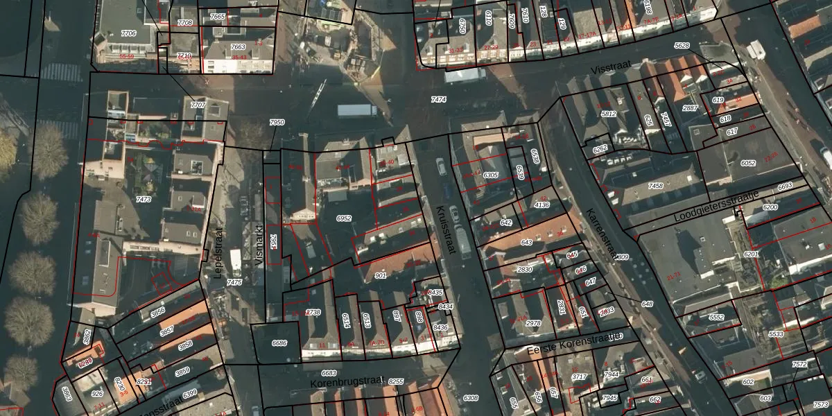 Het perceel waarop Kruisstraat 36 staat heeft een oppervlakte van 895 m². Dit is een groot perceel. De perceeloppervlakte wordt geregistreerd door het Kadaster. Gedetailleerde informatie over de maten van dit perceel kunt u vinden in het rapport Kadastrale kaart met maatvoering van Kruisstraat 36.