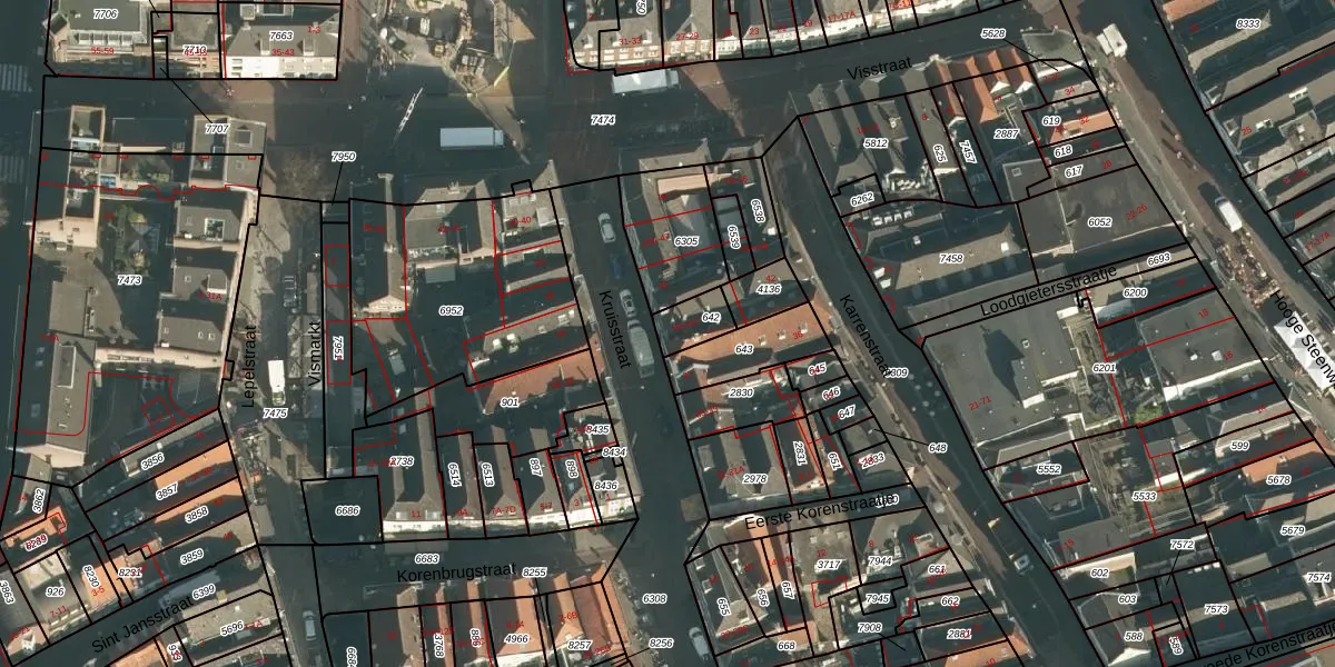 Het perceel waarop Kruisstraat 39 staat heeft een oppervlakte van 84 m². Dit is een klein perceel. De perceeloppervlakte wordt geregistreerd door het Kadaster. Gedetailleerde informatie over de maten van dit perceel kunt u vinden in het rapport Kadastrale kaart met maatvoering van Kruisstraat 39.