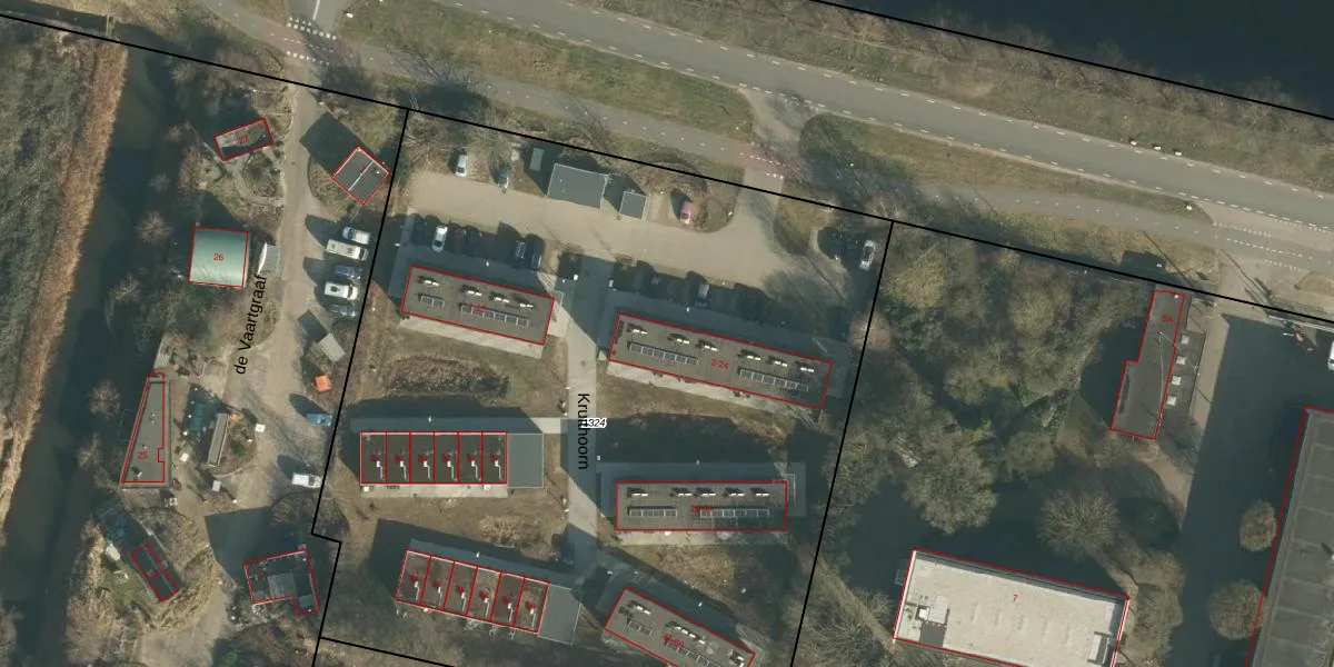 Het perceel waarop Kruithoorn 16 staat heeft een oppervlakte van 5900 m². Dit is een zeer groot perceel. De perceeloppervlakte wordt geregistreerd door het Kadaster. Gedetailleerde informatie over de maten van dit perceel kunt u vinden in het rapport Kadastrale kaart met maatvoering van Kruithoorn 16.