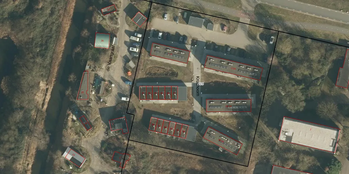 Het perceel waarop Kruithoorn 17 staat heeft een oppervlakte van 5900 m². Dit is een zeer groot perceel. De perceeloppervlakte wordt geregistreerd door het Kadaster. Gedetailleerde informatie over de maten van dit perceel kunt u vinden in het rapport Kadastrale kaart met maatvoering van Kruithoorn 17.