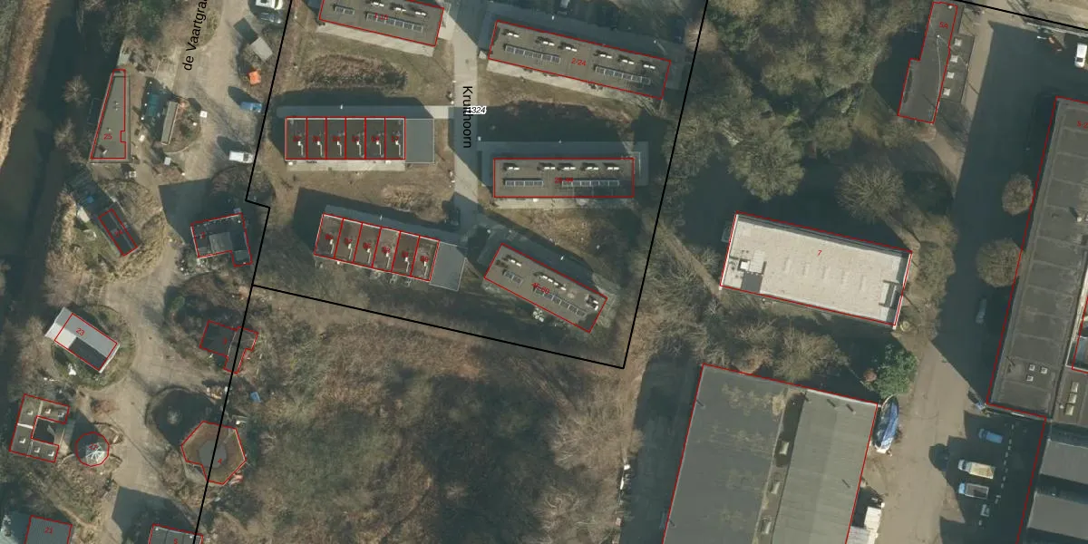 Het perceel waarop Kruithoorn 56 staat heeft een oppervlakte van 5900 m². Dit is een zeer groot perceel. De perceeloppervlakte wordt geregistreerd door het Kadaster. Gedetailleerde informatie over de maten van dit perceel kunt u vinden in het rapport Kadastrale kaart met maatvoering van Kruithoorn 56.
