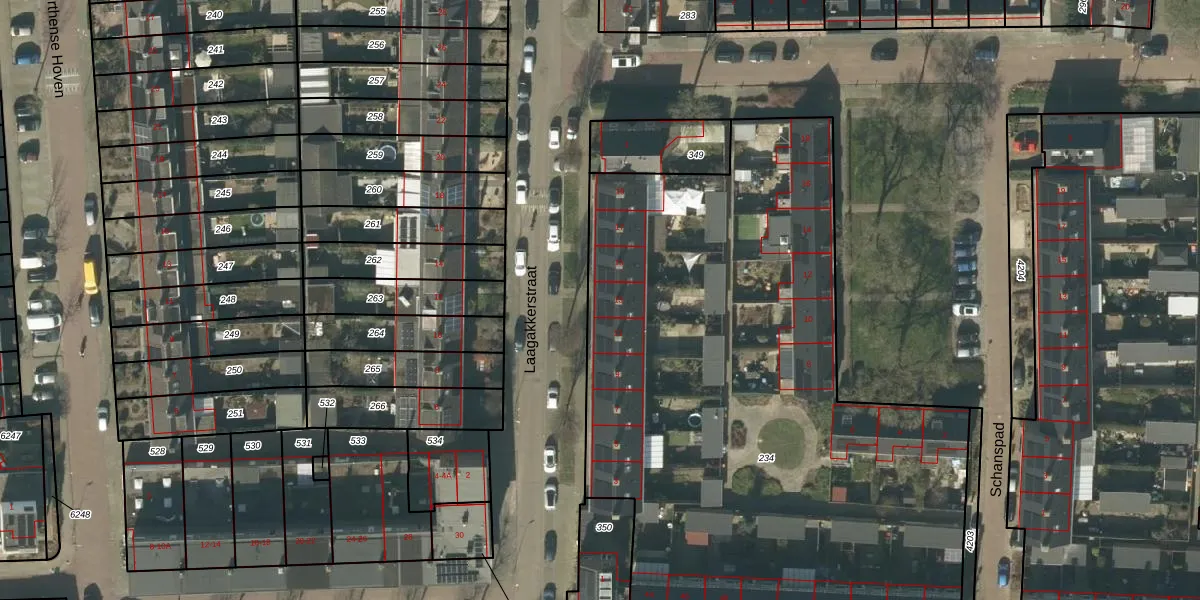 Het perceel waarop Laagakkerstraat 13 staat heeft een oppervlakte van 4190 m². Dit is een zeer groot perceel. De perceeloppervlakte wordt geregistreerd door het Kadaster. Gedetailleerde informatie over de maten van dit perceel kunt u vinden in het rapport Kadastrale kaart met maatvoering van Laagakkerstraat 13.