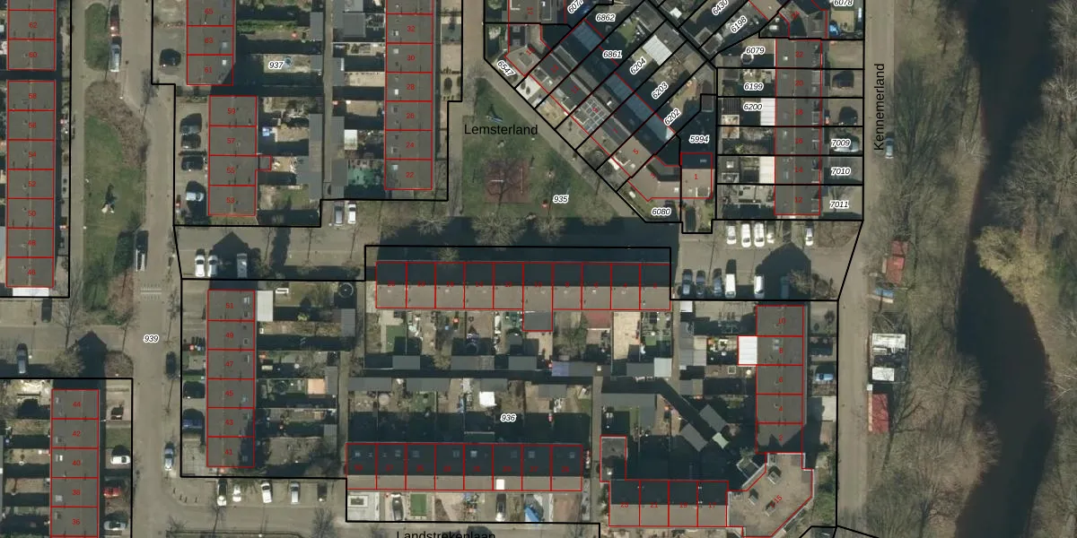 Het perceel waarop Lemsterland 10 staat heeft een oppervlakte van 5614 m². Dit is een zeer groot perceel. De perceeloppervlakte wordt geregistreerd door het Kadaster. Gedetailleerde informatie over de maten van dit perceel kunt u vinden in het rapport Kadastrale kaart met maatvoering van Lemsterland 10.