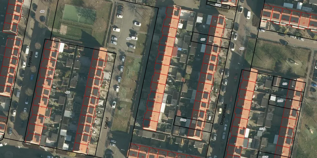 Het perceel waarop Leyhof 29 staat heeft een oppervlakte van 9373 m². Dit is een zeer groot perceel. De perceeloppervlakte wordt geregistreerd door het Kadaster. Gedetailleerde informatie over de maten van dit perceel kunt u vinden in het rapport Kadastrale kaart met maatvoering van Leyhof 29.
