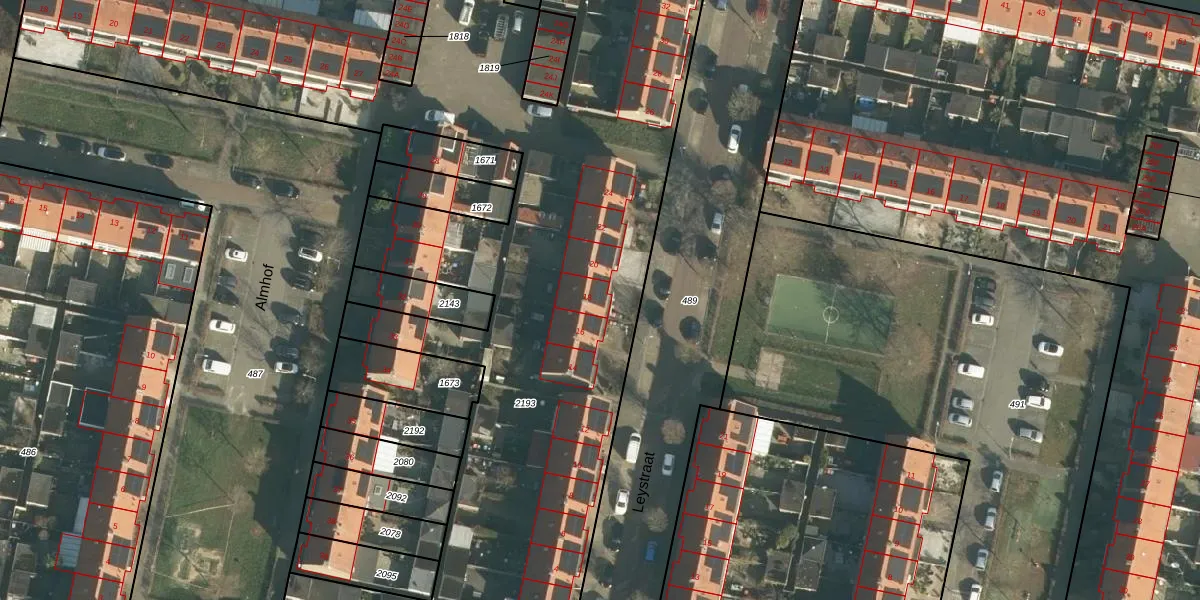 Het perceel waarop Leystraat 18 staat heeft een oppervlakte van 8443 m². Dit is een zeer groot perceel. De perceeloppervlakte wordt geregistreerd door het Kadaster. Gedetailleerde informatie over de maten van dit perceel kunt u vinden in het rapport Kadastrale kaart met maatvoering van Leystraat 18.