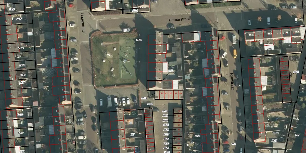 Het perceel waarop Lingestraat 13 staat heeft een oppervlakte van 4745 m². Dit is een zeer groot perceel. De perceeloppervlakte wordt geregistreerd door het Kadaster. Gedetailleerde informatie over de maten van dit perceel kunt u vinden in het rapport Kadastrale kaart met maatvoering van Lingestraat 13.