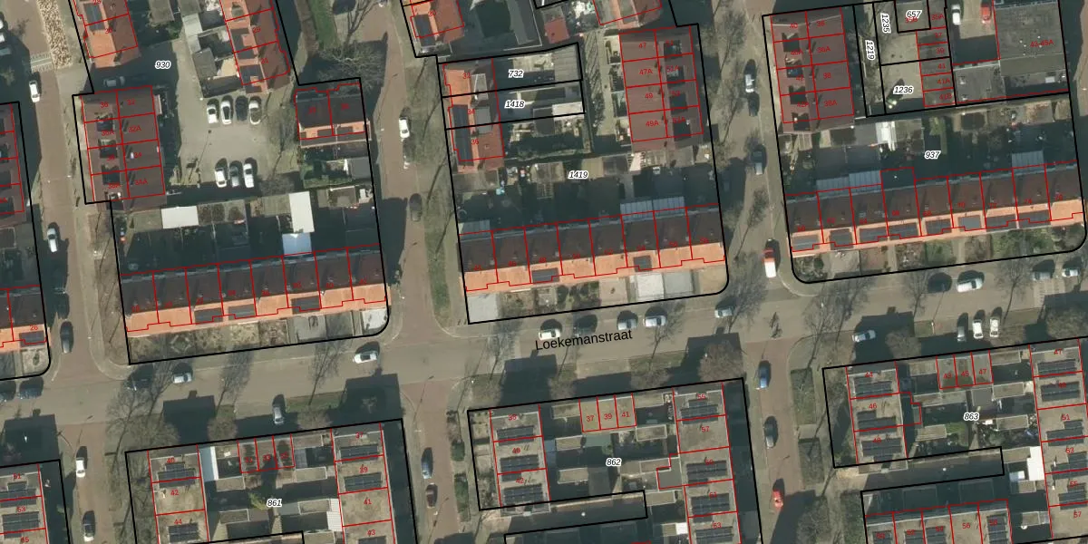Het perceel waarop Loekemanstraat 48 staat heeft een oppervlakte van 2525 m². Dit is een zeer groot perceel. De perceeloppervlakte wordt geregistreerd door het Kadaster. Gedetailleerde informatie over de maten van dit perceel kunt u vinden in het rapport Kadastrale kaart met maatvoering van Loekemanstraat 48.
