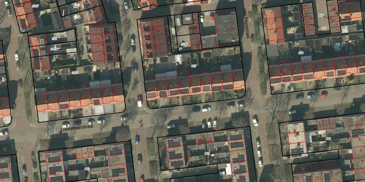 Het perceel waarop Loekemanstraat 66 staat heeft een oppervlakte van 1928 m². Dit is een zeer groot perceel. De perceeloppervlakte wordt geregistreerd door het Kadaster. Gedetailleerde informatie over de maten van dit perceel kunt u vinden in het rapport Kadastrale kaart met maatvoering van Loekemanstraat 66.